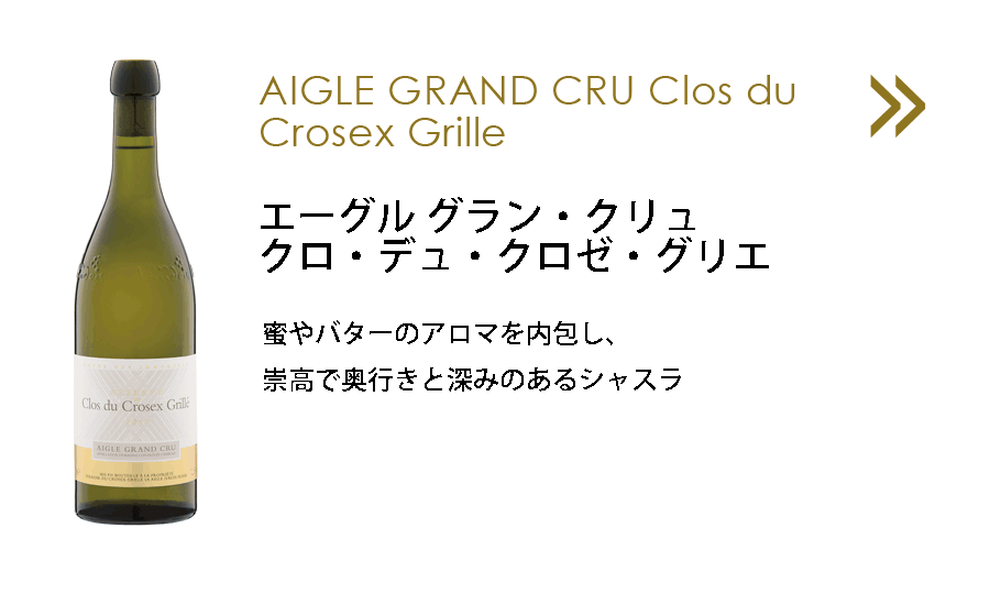 シャスラの銘醸地として知られるエーグルに位置する「クロ・デュ・クロゼ・グリエ」。中世の修道士が開墾した円形劇場を思わせる石垣の畑で、偉大なシャスラを生み出しています。清らかなスイカズラやライムの花の香り、果実の豊かなコクとボリューム感。熟成が増すにつれ、蜜やバターのアロマが現れます。